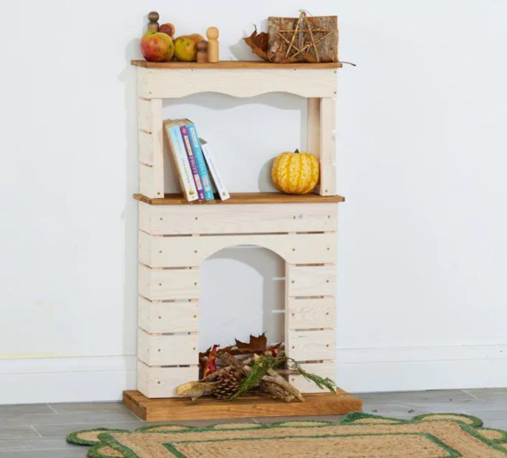 Een gezellig hoekje in de kinderopvang, waar warme knusheid en huiselijke charme samenkomen. Met onze schattige openhaard, met een hoogte van 79 cm, kunnen kinderen zich onderdompelen in een wereld van verhalen en verbeelding terwijl ze genieten van het comfort van een denkbeeldig knisperend haardvuur.