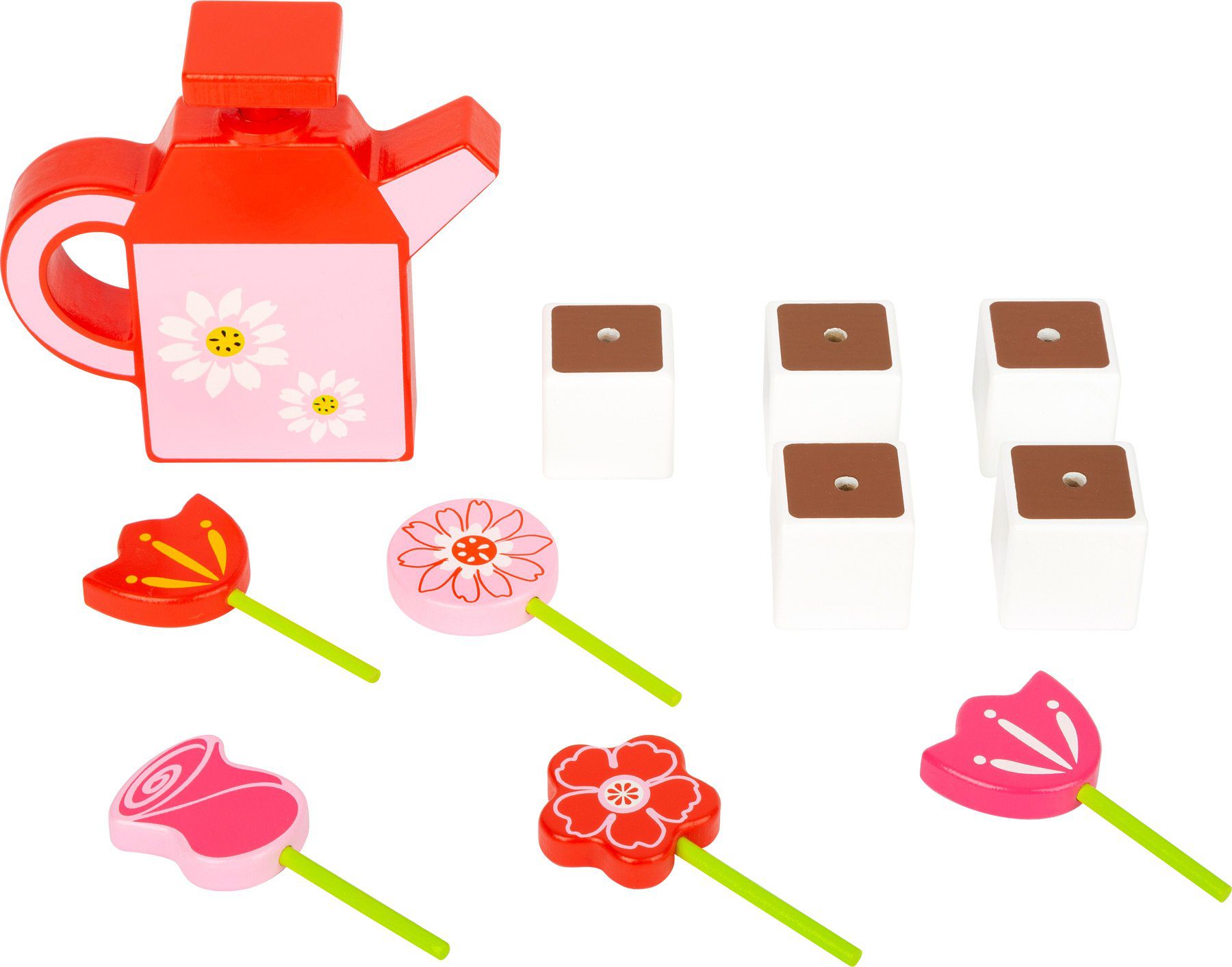 Beschrijving Houten speelgoed – Bloemenset met gieter en accessoires