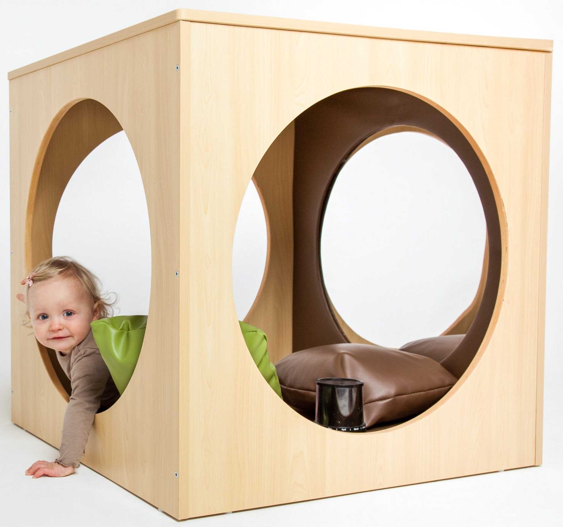 Een groot spektakel voor kinderen die willen experimenten en ontdekken. Deze kubus zorgt dat de zintuigen van de kinderen getriggerd worden. De kubus kan naar wens worden verfraaid met extra kussens en gordijnen. Er zijn geen grenzen aan de fantasie als het gaat om het ontwerp.