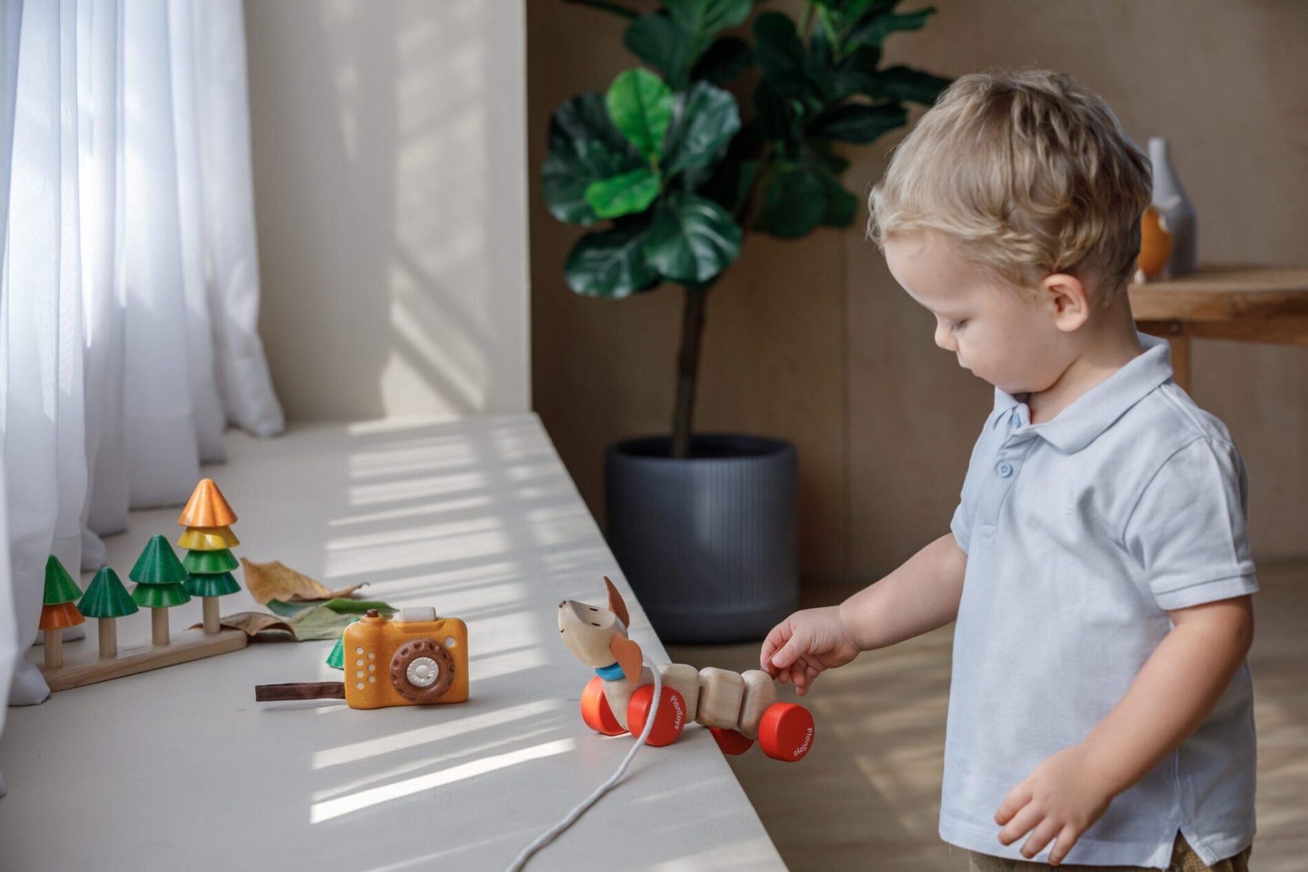 Beschrijving Plan Toys Houten trekdier Vrolijke Hond