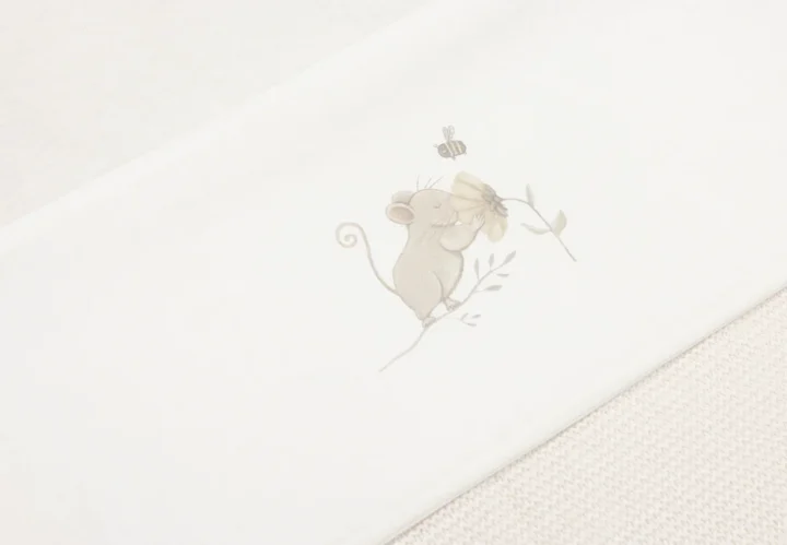 Hoe cute is dit lakentje? Het schattige muisje dat snuffelt aan een bloemetje uit hetg Dreamy Mouse thema staat afgebeeld op de boord van het lakentje. Een lakentje zorgt ervoor dat jij de kleintjes veilig en strak kan instoppen en het beschermt het dekentje tegen vlekjes van bijvoorbeeld spugen.