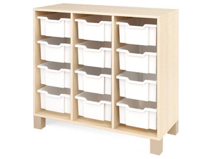 Beschrijving Vakkenkast met 12 opbergbakken – Berken