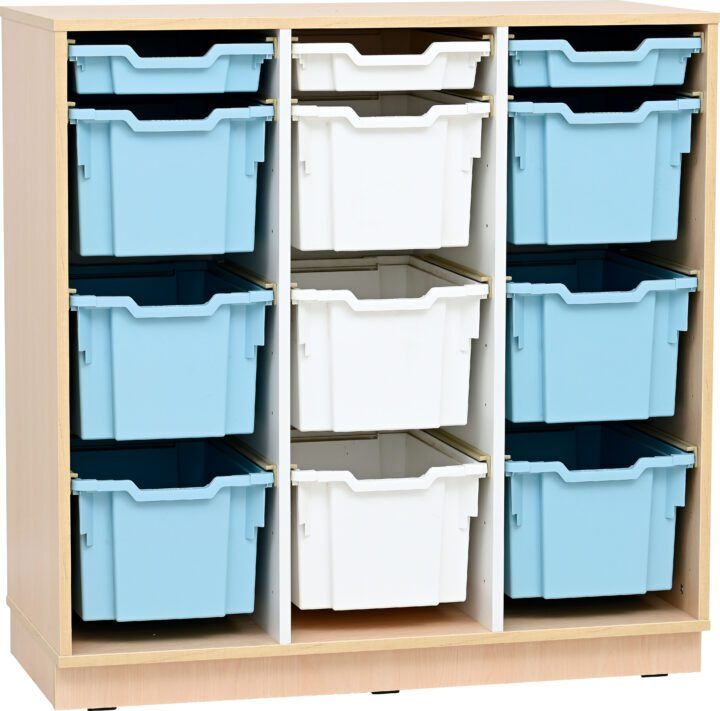 - Deze kast wordt geleverd inclusief 12 witte/blauwe Gratnell opbergbakken
