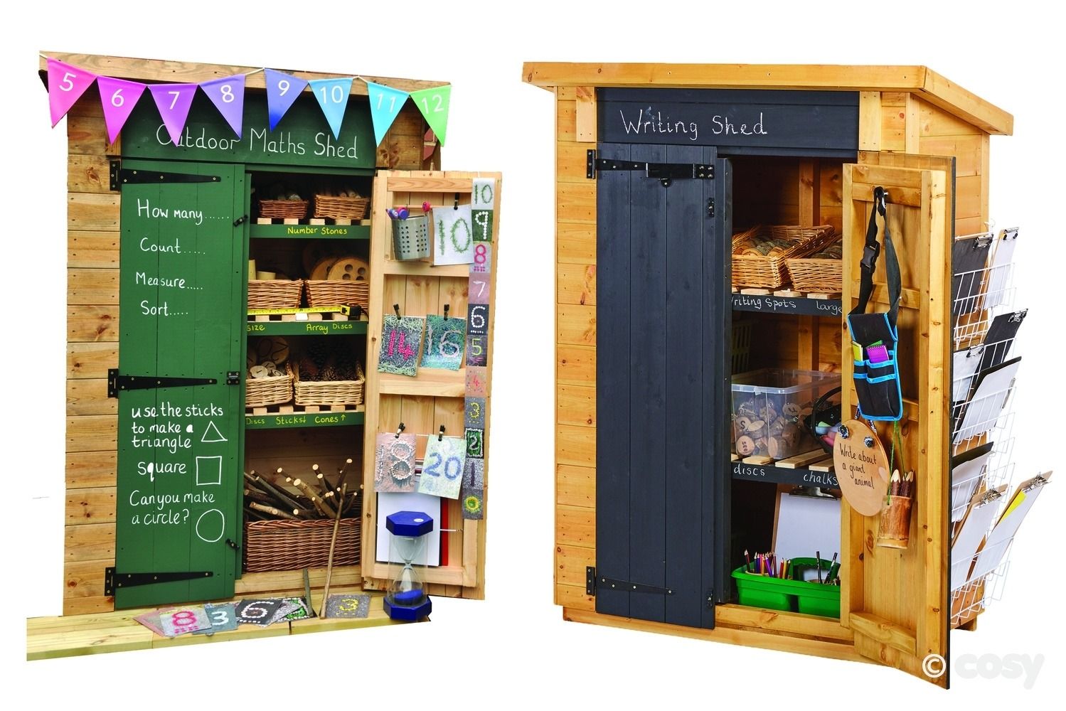 Uniek in de kinderopvang: Specifieke opbergkasten voor buiten. Bewaar al uw reken- en schrijfbenodigdheden in dit fraai ogende opbergmeubels voor buiten. Bespaar uzelf een dubbele levering en ontvang onze briljante twee buitenkasten in één bestelling. Deze prachtige meubels zijn een ideale aanvulling op uw buitenlessen en stimuleren het wiskundig denken, vroegtijdig schrijve en het zelfstandig leren.