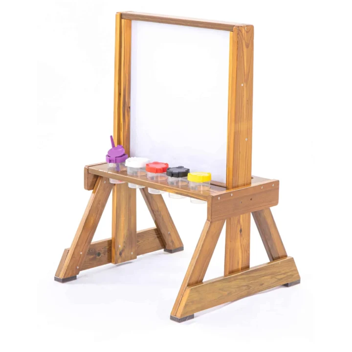 Deze stevige buitentafel nodigt jonge kunstenaars uit om hun fantasie de vrije loop te laten en spelenderwijs te schilderen en tekenen.