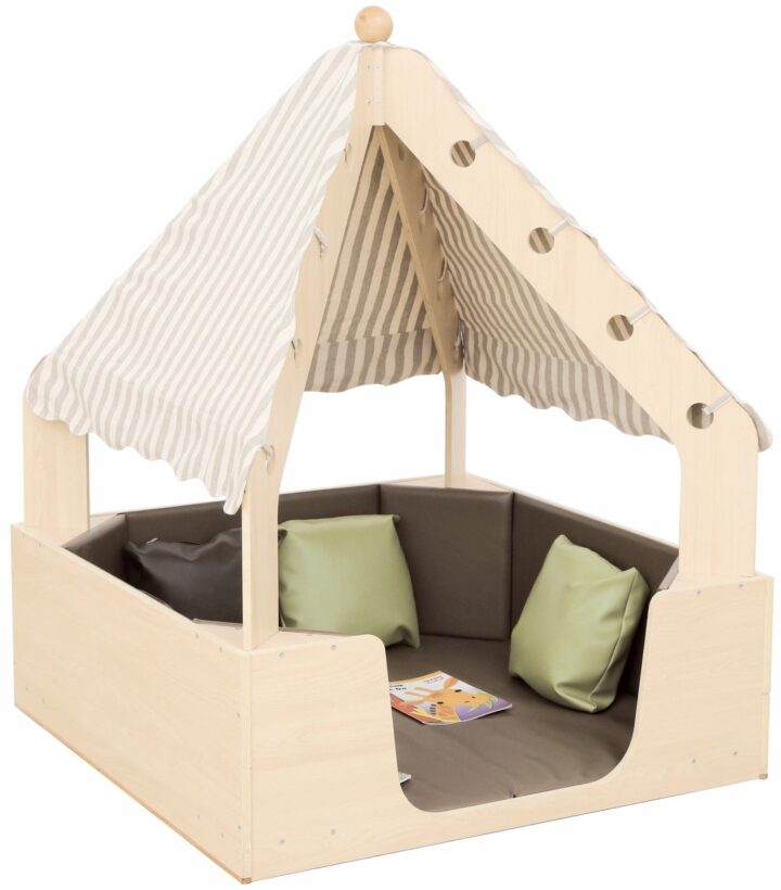 Knus en bijzonder gezellig! het huisje heeft een eenvoudig maar modern ontwerp waardoor het in elk kinderdagverblijf past. Het nodigt uit tot ontspannen, lezen of spelen. De ideale plek om tot rust te komen.