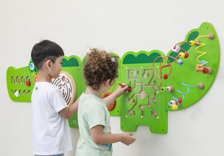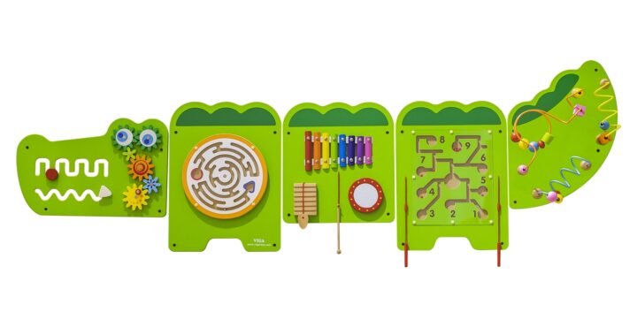 Beschrijving Krokodillenmuurspel Wandspeelbord – Ontdek Wandelementen 5 delig
