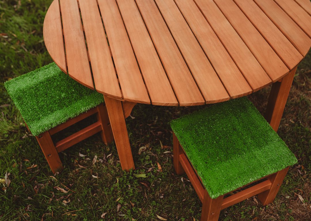 Deze Kruk met Kunstgras Zitting is het perfecte krukje om te combineren met de ronde eucalyptus buitentafel. Het biedt een comfortabele, natuurlijke zitplek en is ideaal voor buitenactiviteiten zoals leren, spelen en ontspannen. De grass-stijl afwerking zorgt voor een speelse uitstraling en past naadloos in elke buitenruimte.