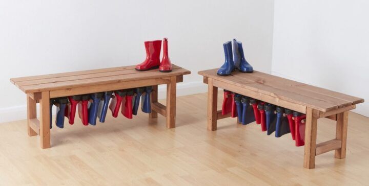 Wanneer kinderen hun regenlaarzen of schoenen moeten verschonen, hebben ze een handige plek nodig om te zitten.