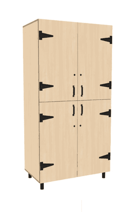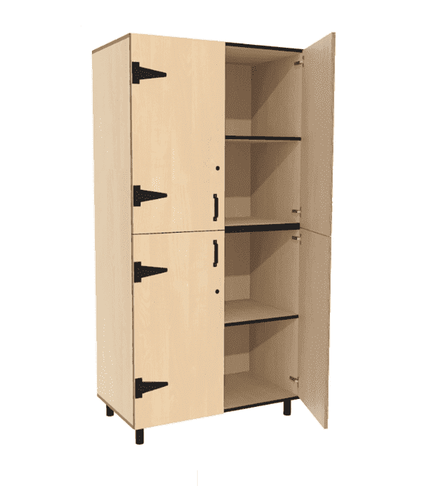 Leidsterkast met deuren, voorzien van sloten. Achter de deuren zijn legplanken aanwezig. Leidsterkast Tessa is voorzien van zwarte grepen, scharnieren en kantenband en staat op zwarte meubelpootjes (niet verrijdbaar).