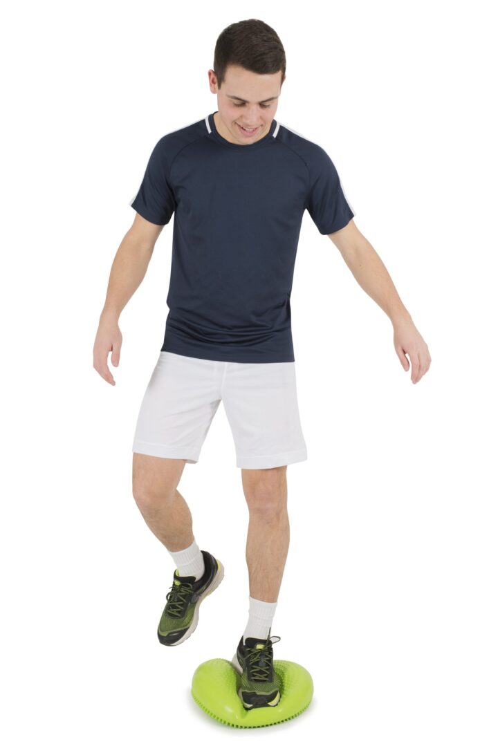 Veelzijdig opblaasbaar kussen kan zittend, staand of liggend op de grond worden gebruikt. Het kan gebruikt worden zittend om opgehoopte energie vrij te maken, de concentratie te verbeteren en een goede zithouding te bevorderen houding. Staand gebruikt verbetert het de proprioceptieve en evenwichtsvaardigheden. Gladde bulten aan één kant van het kussen zorgen voor een tastbare ervaring en kunnen helpen bij het verminderen van moeilijkheden met tactiele defensiviteit. De andere kant heeft kleinere, minder dichte tactiele receptoren.