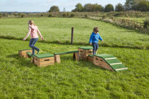 - Zachte grasbekleding met houten latten – Voor extra grip en duurzaamheid.