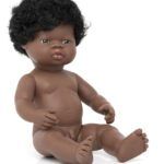 Beschrijving Miniland Pop Afrikaanse Jongen met haar – 38 cm