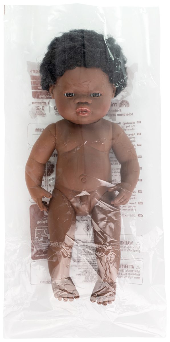 - Pop Afrikaanse jongen, 38cm, met vanillegeur, waterdicht, anatomisch correct, in vinyl, in geschenkdoos.
