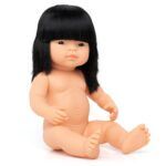 Beschrijving Miniland Pop Aziatisch Meisje met haar – 38 cm