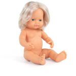 Beschrijving Miniland Pop Europees Meisje met haar – 38 cm