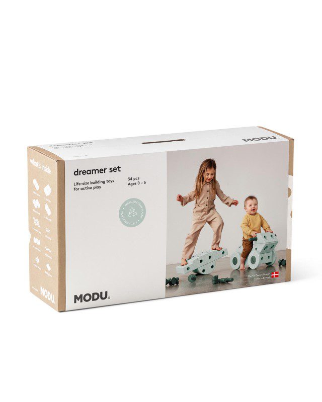 Als je helemaal full option in MODU speelgoed wil duiken, dan is de Dreamer Kit exact wat je zoekt. De Dreamer Kit is niet voor niks onze ‘flagship set’, diegene waarmee je het meeste kan. Jij en je kind kunnen samen meer dan 12 unieke, levensgrote creaties maken, waarmee je kind dan kan gaan rollen, tollen, spelen, springen, dansen… kortom bewegen! Het plezier begint bij de start van het bouwproces, en stopt… nooit. Want MODU groeit gewoon jarenlang mee met je kindje!