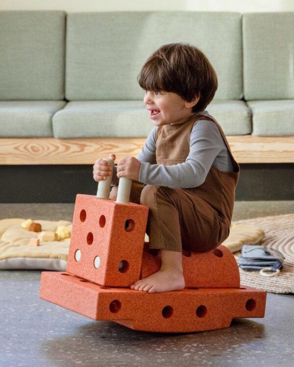 De MODU blokken zijn gemaakt van stevig maar zacht EPP Foam. EPP is een duurzaam en kwalitatief hoogwaardig materiaal, vervaardigd in Europa, 100% recycleerbaar en 100% food-graded.