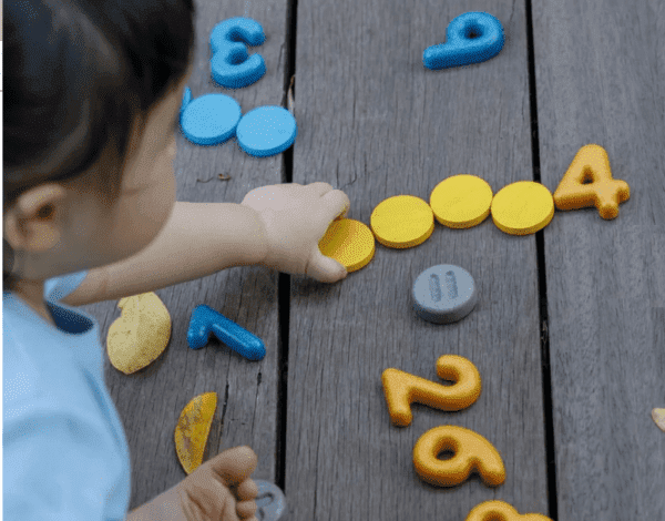 Houten 3D-wiskundeblokken met een open einde voor tellen en begrijpen, ontworpen om kinderen aan te moedigen samen te stellen om getallen te begrijpen.