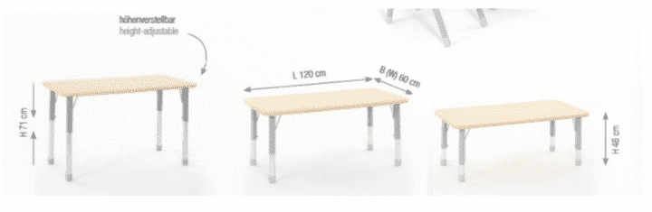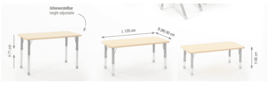 Beschrijving Olaf Tafel Rechthoek in hoogte verstelbaar 120 x 60 cm – Hoogte 46-71 cm