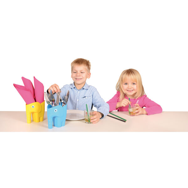 Deze multifunctionele vierkoppige olifantenfamilie is geweldig voor zand- en waterspelletjes, maar kan voor veel meer gebruikt worden. Op het bureau zijn de olifanten praktisch voor het opbergen van pennen, linialen, scharen en andere creatieve gebruiksvoorwerpen. Op de eettafel houden ze servetten en bestek gesorteerd. Na gebruik kunnen de olifanten worden gestapeld om ruimte te besparen.