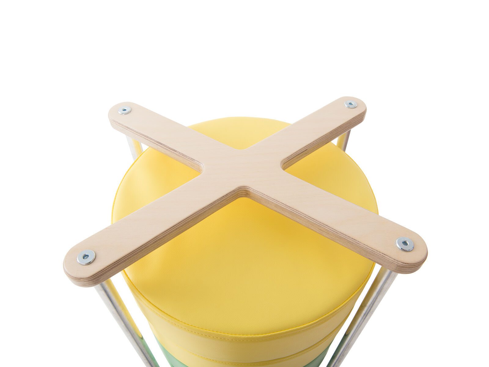 Gemaakt van berken multiplex en aluminium buizen, het bevat 4 wielen, waarvan 2 met een rem. Voor de standaard wordt een set van 12 poefs uit de NATURE-collectie of set van 12 ronde poefjes kleuren aanbevolen.