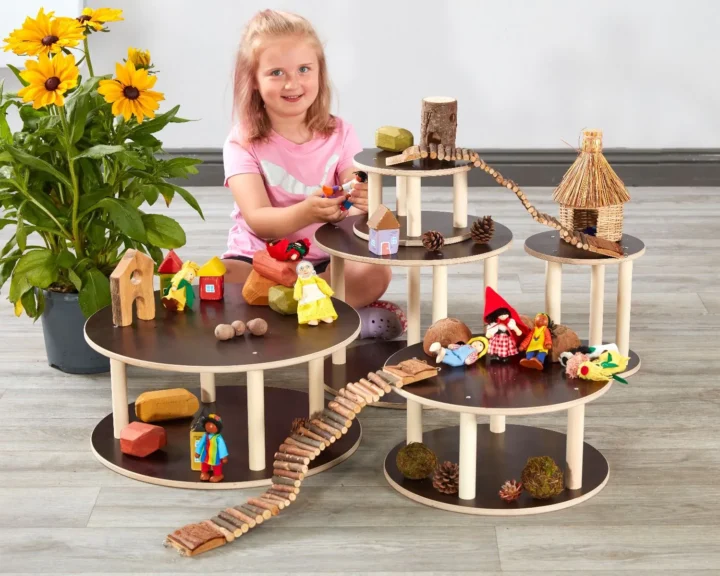 Onze speciaal gebouwde trapsgewijze speelstructuren zijn ideaal om groot en klein spelen in de kleine wereld te stimuleren. Stapel ze op elkaar voor een gigantisch sprookjeskasteel of spreid ze uit met bruggen ertussen voor een magisch tovenaarskoninkrijk! De mogelijkheden zijn eindeloos!