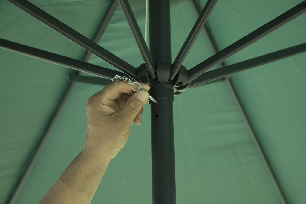 De parasol zorgt voor aangename schaduw en biedt extra bescherming op warme dagen. Dankzij het gepoedercoate staal en de stevige bekleding is hij weerbestendig, duurzaam en eenvoudig te reinigen. Ideaal voor de buitenruimte van de kinderopvang.