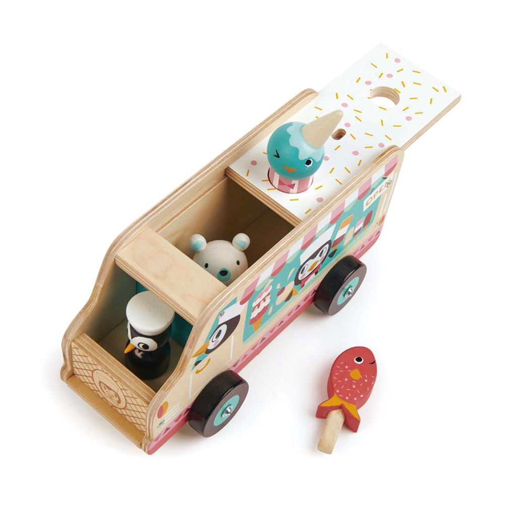 Een eigenzinnige gelato ijscowagen bestuurd door een paar vervelende pinguïns...Het deksel van de wagen is afneembaar om er 3 zoete ijsjes uit te halen die op het dak gezet kunnen worden.