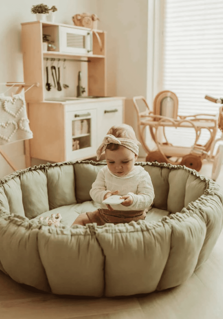 De Play&Go Bloom is een uniek 3-in-1 speelkleed dat meegroeit met je kind. Wanneer de bloemblaadjes omhoog staan, vormen ze een veilig ligbed voor de baby, met zachte bumpers om ze te beschermen. Als de bloemblaadjes in bloei staan, gaat het speelkleed open en worden de stootranden neergelaten, waardoor een groot, comfortabel speelmat voor baby's ontstaat. Perfect om onder toezicht te spelen en op ontdekkingstocht te gaan. De Play&Go Bloom kan ook worden uitgestald in een kinderkamer of speelkamer, waar het favoriete speelgoed van het kind wordt bewaard en alles op één plek blijft.