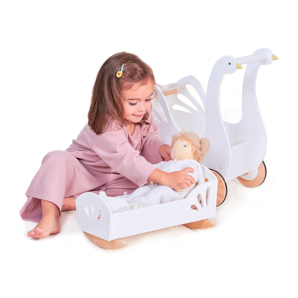 Tender Leaf Preschool: POPPENBED Sweet Swan 37,7x21,5x20cm, met accessoires (pop niet inbegrepen), in hout, in doos, 18m+