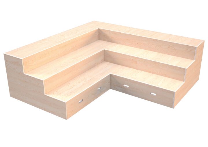 Deze tribune dienen als zitplaats voor de leerlingen. De modules kunnen naast elkaar worden geplaatst op verschillende plaatsen in de school of op de BSO, bijvoorbeeld in de gang.