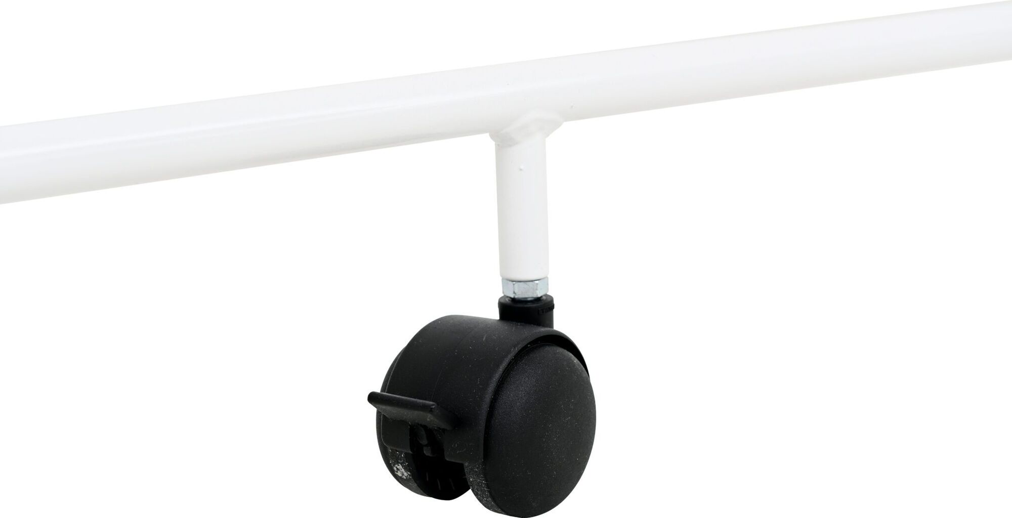 De witte afwerking geeft de wagen een frisse, hygiënische uitstraling die goed past in elke slaap- of groepsruimte. Dankzij het lage, stabiele ontwerp blijft het geheel goed in balans, ook bij volle belading.
