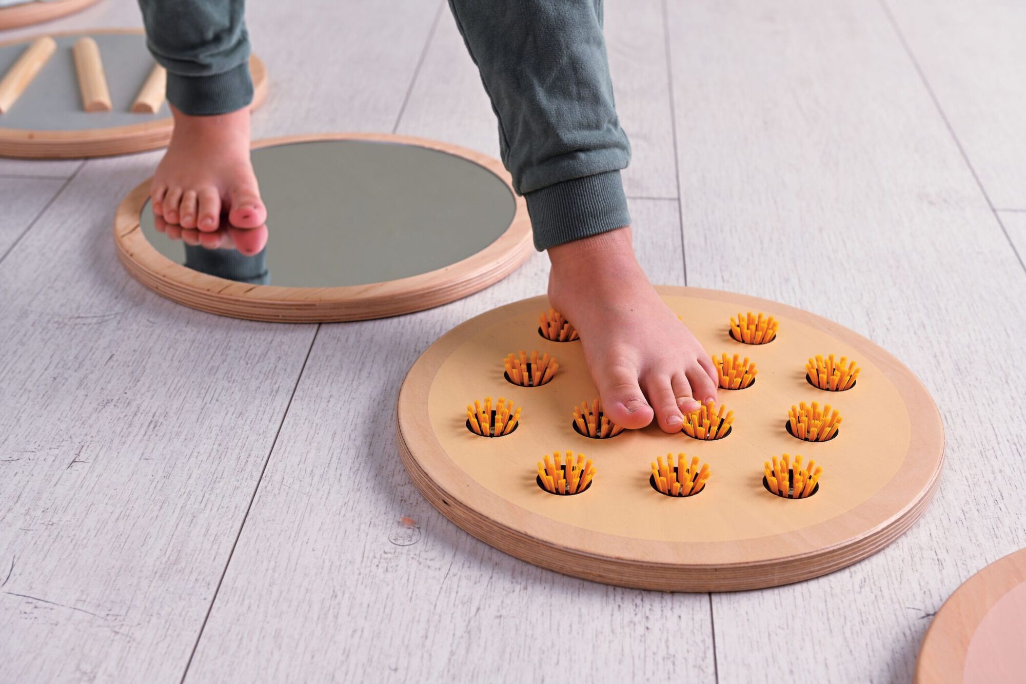 Deze sensorische eilanden nodigen kinderen uit om spelenderwijs te ontdekken, te voelen en te experimenteren. Elk eiland biedt een unieke prikkel: van materialen met verschillende texturen tot elementen die bewegen, ritselen of geluid maken. Perfect voor peuters, kleuters en kinderen met extra sensorische ondersteuningsbehoeften.