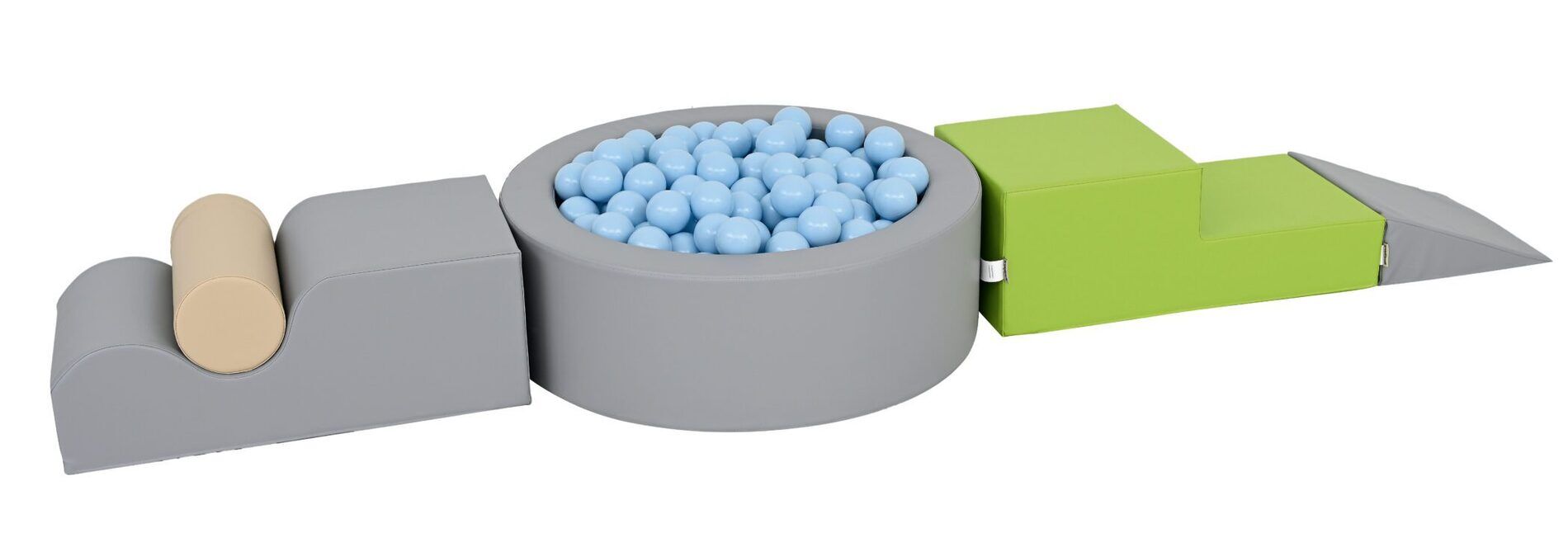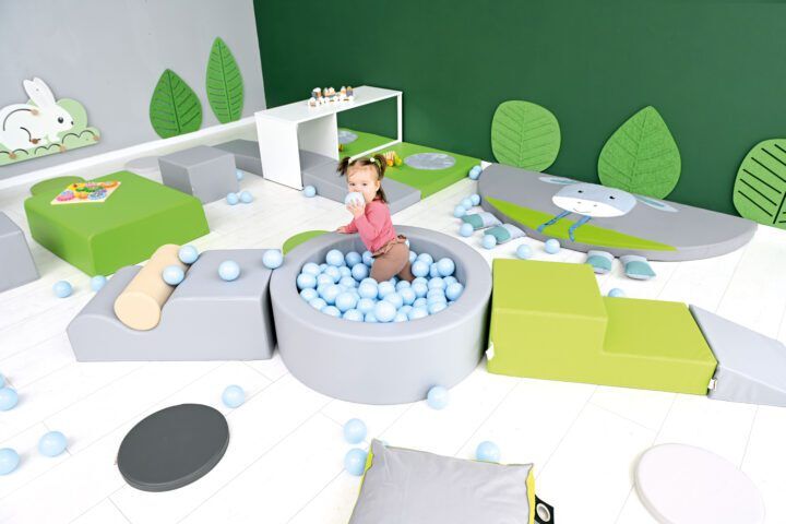 Deze ronde Ballenbak is een de speelplek voor peuters. Een mooie set van foam blokken creëert 3 verschillende ingangen tot het de ballenbak, wat het spelen aantrekkelijker maakt.