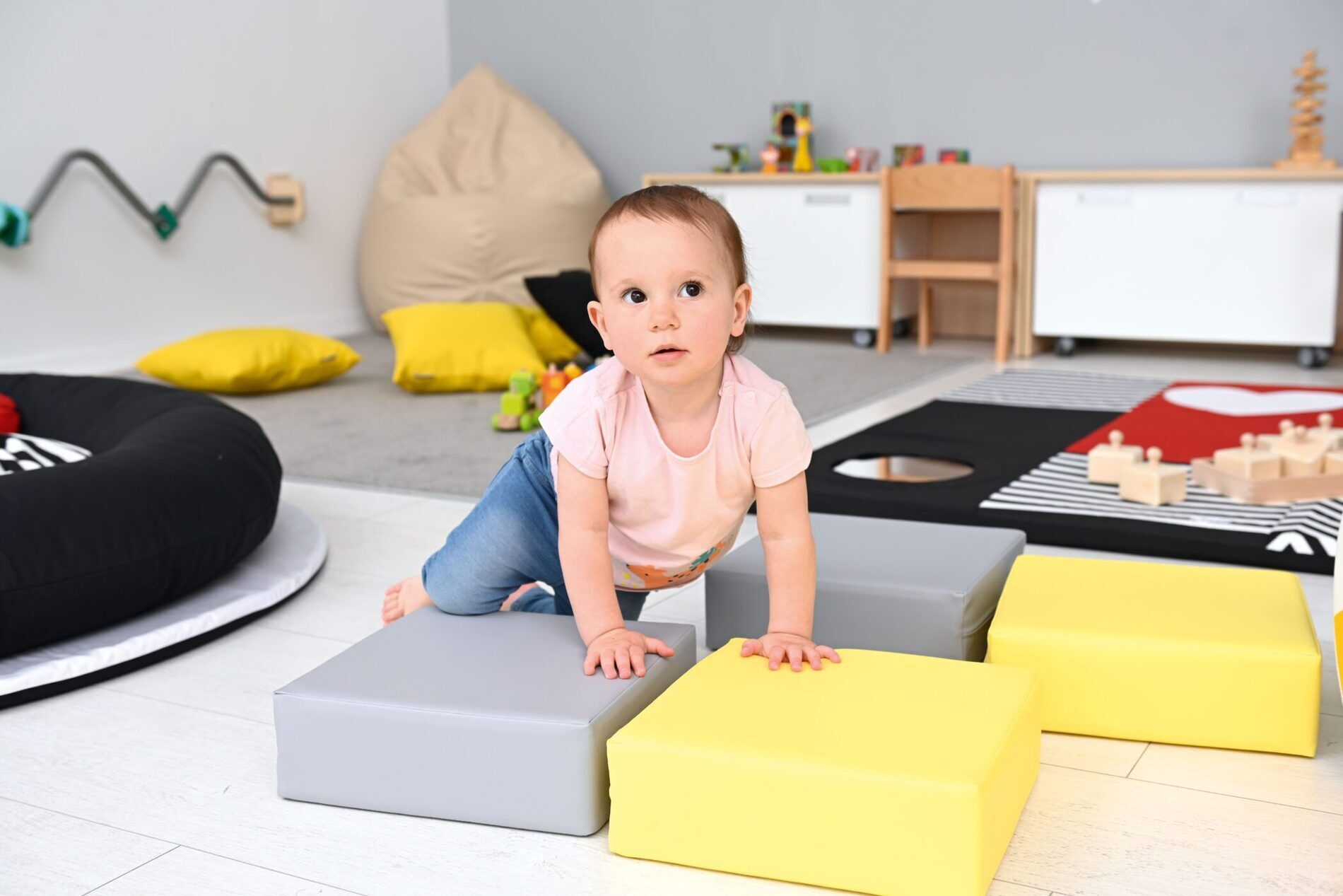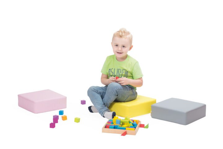 Deze mooie kleurrijke set bestaat uit 10 schuimrubberen zitkussens met bijpassende trolley. Zo blijft de speelhoek ook netjes.