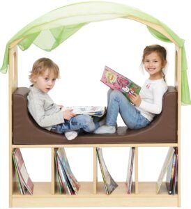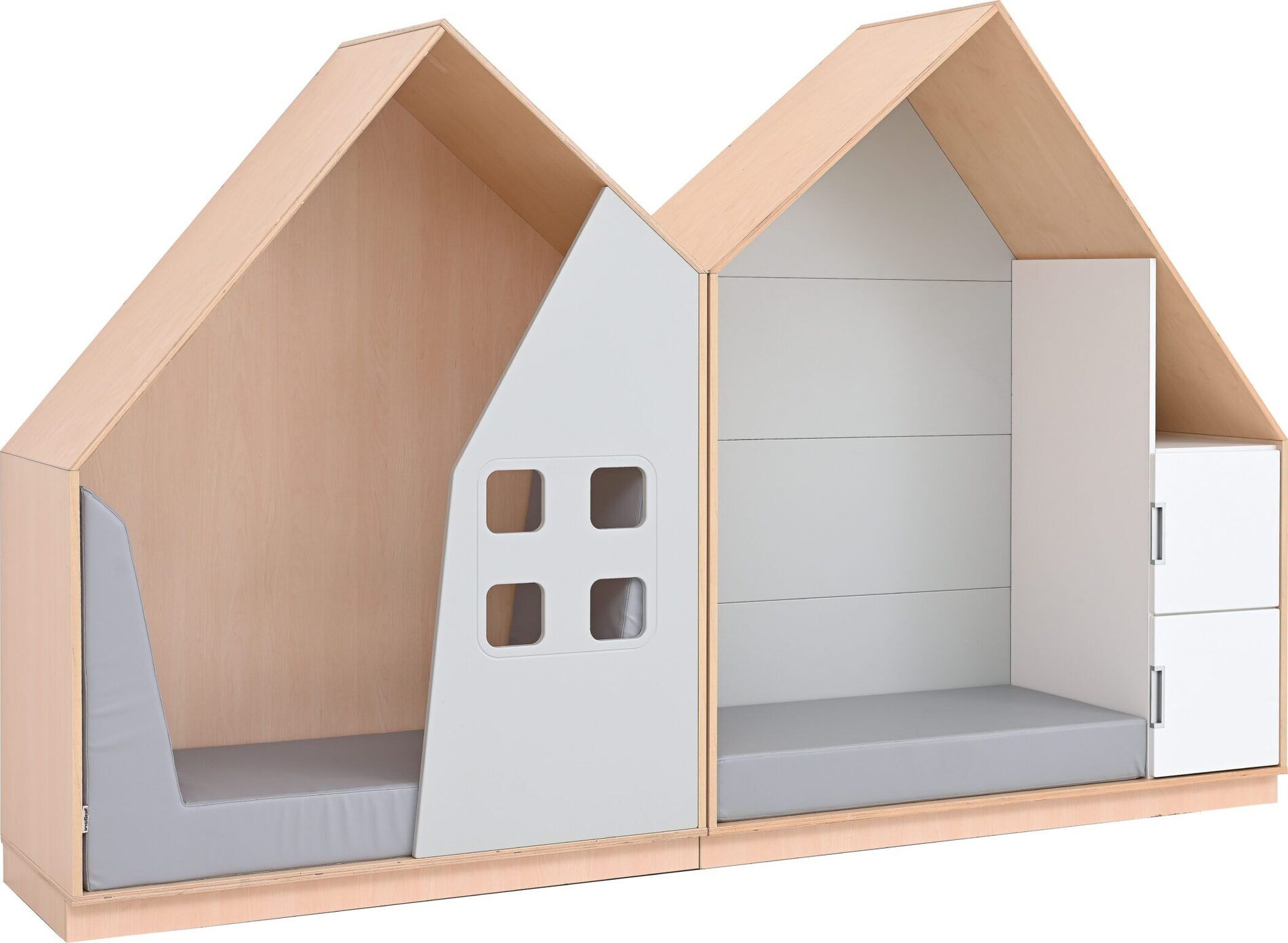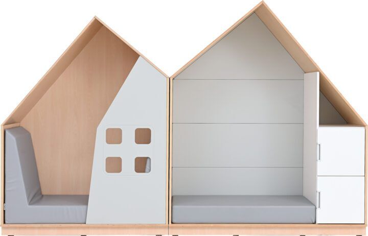 Deze volledige set van twee huisjes is een prachtige toevoeging in de kinderopvangruimte. Kinderen kunnen zich even terugtrekken met een boek, om te rusten of om even helemaal te ontspannen. Het ene huisje bevat kastjes, het andere een raamapplicatie.