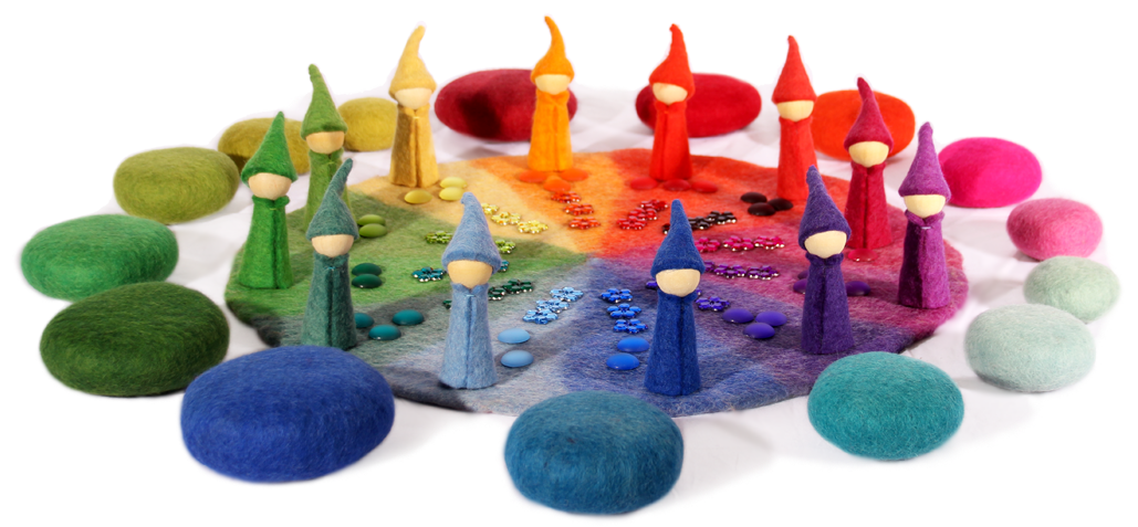 Bauspiel Small World – 12 Kleurrijke houten figuren met vilt