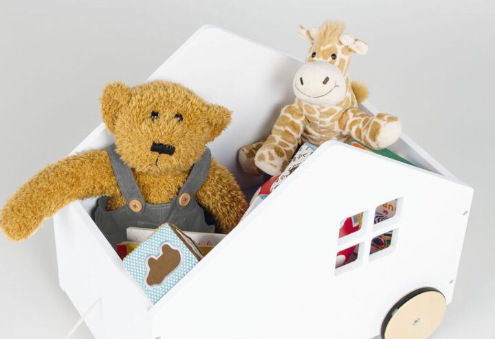 Beschrijving Speelgoedkist met trekkoord in Huislook – Wit