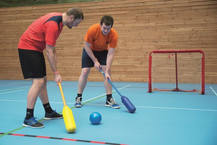 Dit Soft Touch Polo-spel lijkt erg op elk soort hockeyspel, maar heeft een grote ronde en zachte kop samen met de grote schuimrubberen bal maakt het voor iedereen zeer toegankelijk en veilig om te spelen. De schuimbal is ook heel gemakkelijk de lucht in te sturen, waardoor dit spel nog leuker wordt. De schuimkoppen van urethaan hebben een voorgevormde huid dat bestand is tegen afbladderen en afbrokkelen. Set bevat 12 stokjes (6 elk: blauw en geel) met recht schuimrubber gecoate hoofden en 2 playballs. Diameter bal: 15 cm. Sticks verkrijgbaar in twee maten. Junior maat: stoklengte 48cm, koplengte 30cm, kopdiameter 11cm. Seniorenmaat: stoklengte 79cm, koplengte 30,5cm, kopdiameter 11cm.
