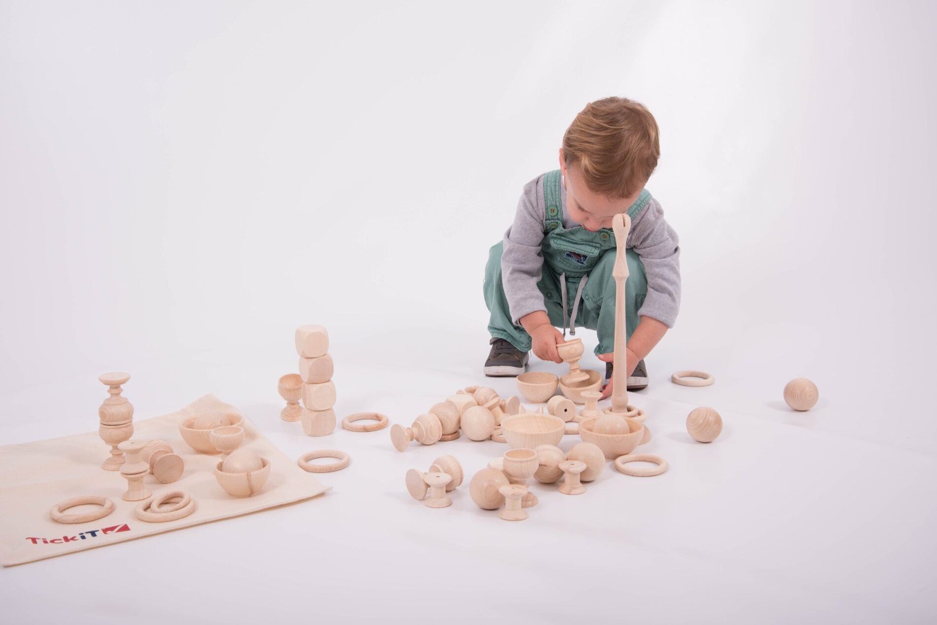 Beschrijving Tickit Heuristisch speelstartpakket Naturel – 63 stuks