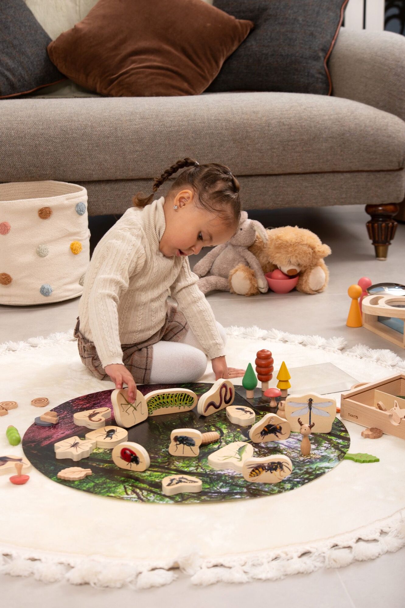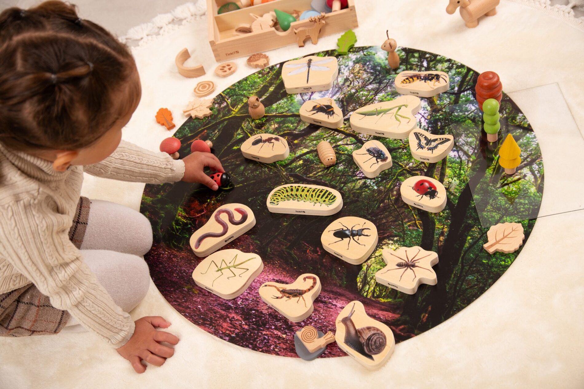 Stevige en lichtgewicht berkenhouten blokken, bedrukt met kleurrijke afbeeldingen van vijftien insecten en minibeestjes aan beide zijden. Ideaal voor jonge kinderen om zich bezig te houden met fantasierijk spel en hun taalvaardigheden te ontwikkelen. De robuuste houten blokken voelen glad aan en zijn gemakkelijk vast te houden, rechtop te zetten en op te stapelen.