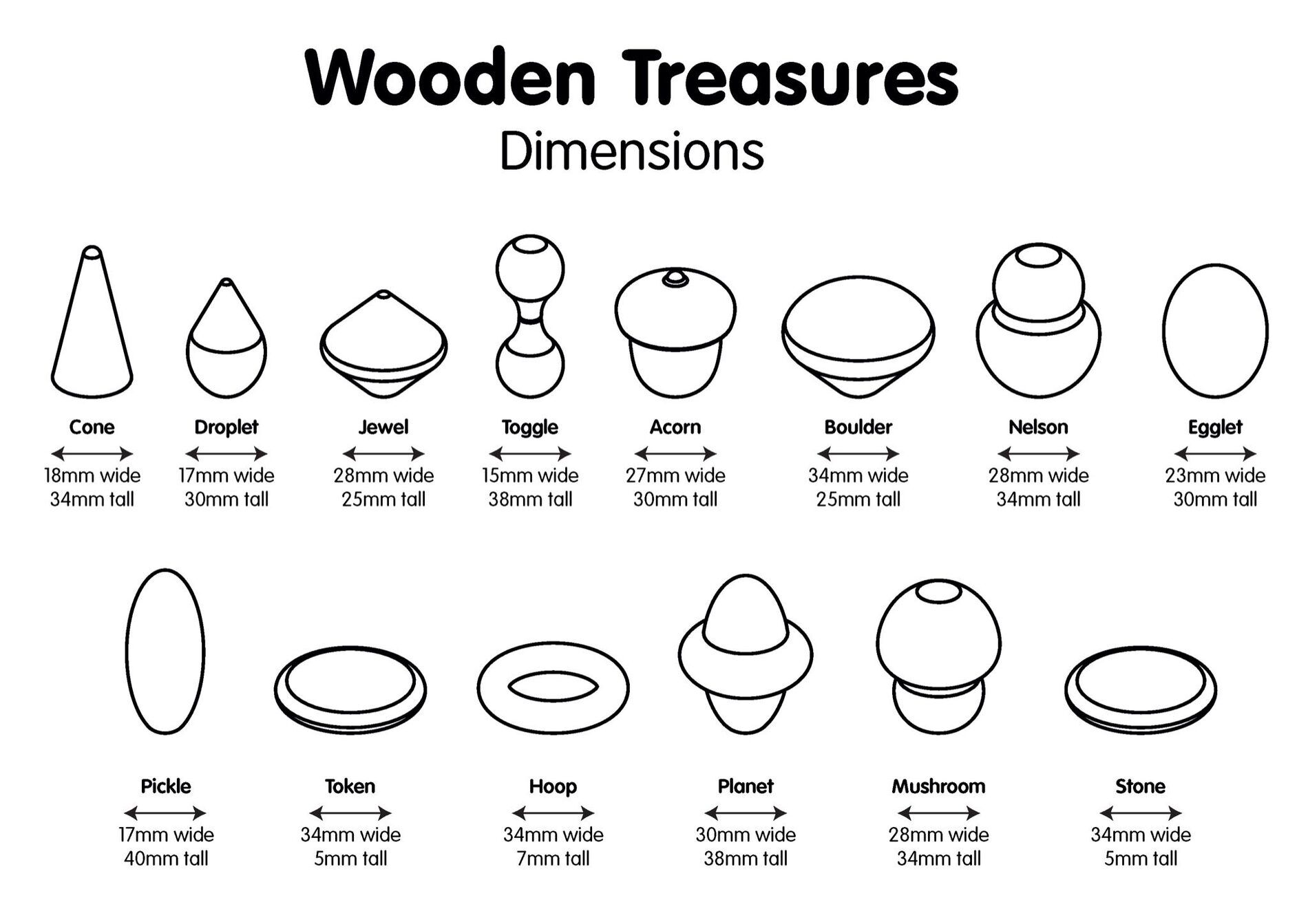 Specificaties voor Tickit Loose Parts Houten schatten Basisset - 42 stuks