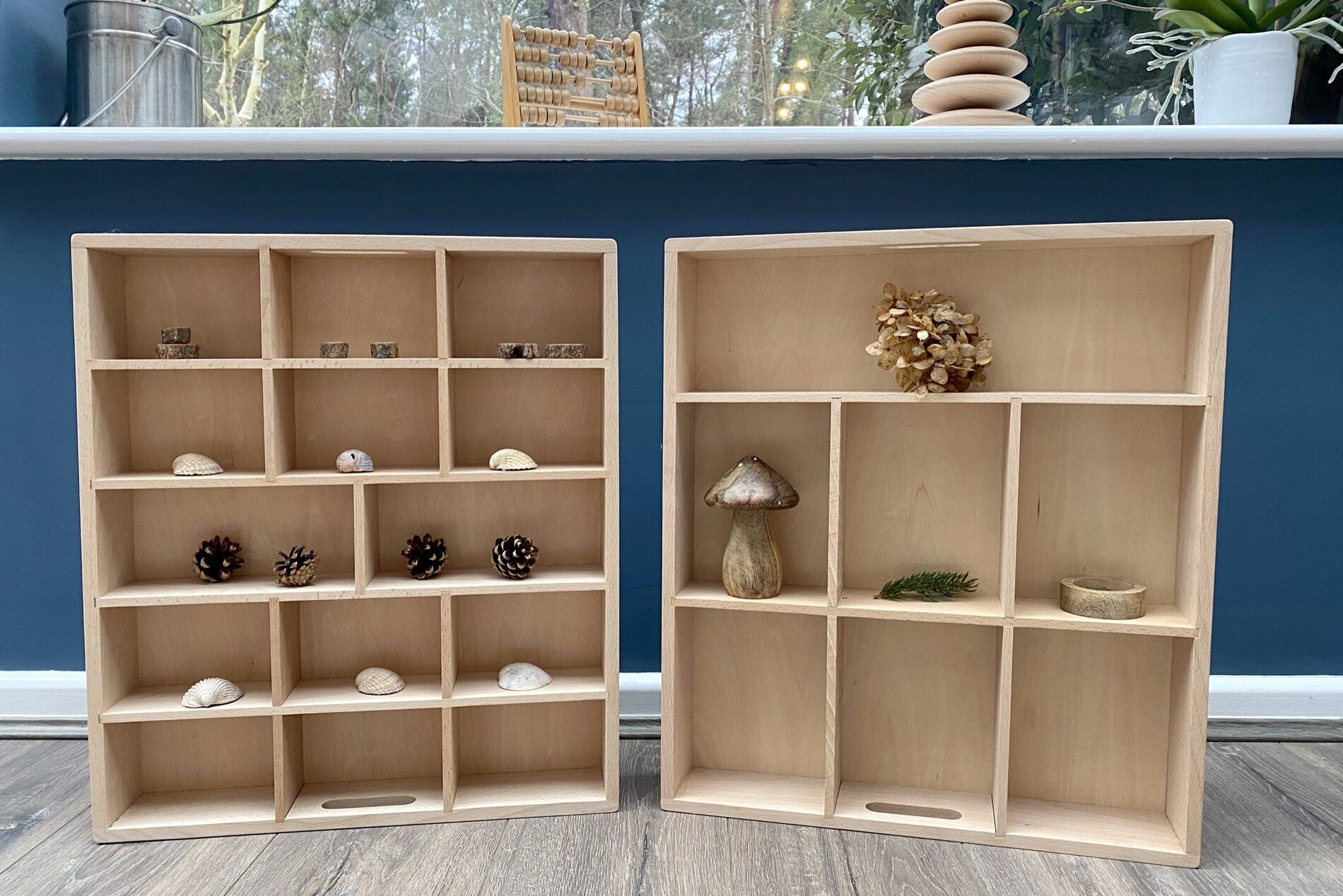 Deze prachtig vervaardigde dienblad van massief beukenhout is verdeeld in 7 stevige vakken die gebruikt kunnen worden voor sorteren en tentoonstellen. Het dienblad kan plat neergezet worden voor gebruik op een bureau of op de vloer, of rechtop gezet worden om tegen een muur of raam te plaatsen. Ideaal voor het sorteren van loose parts.