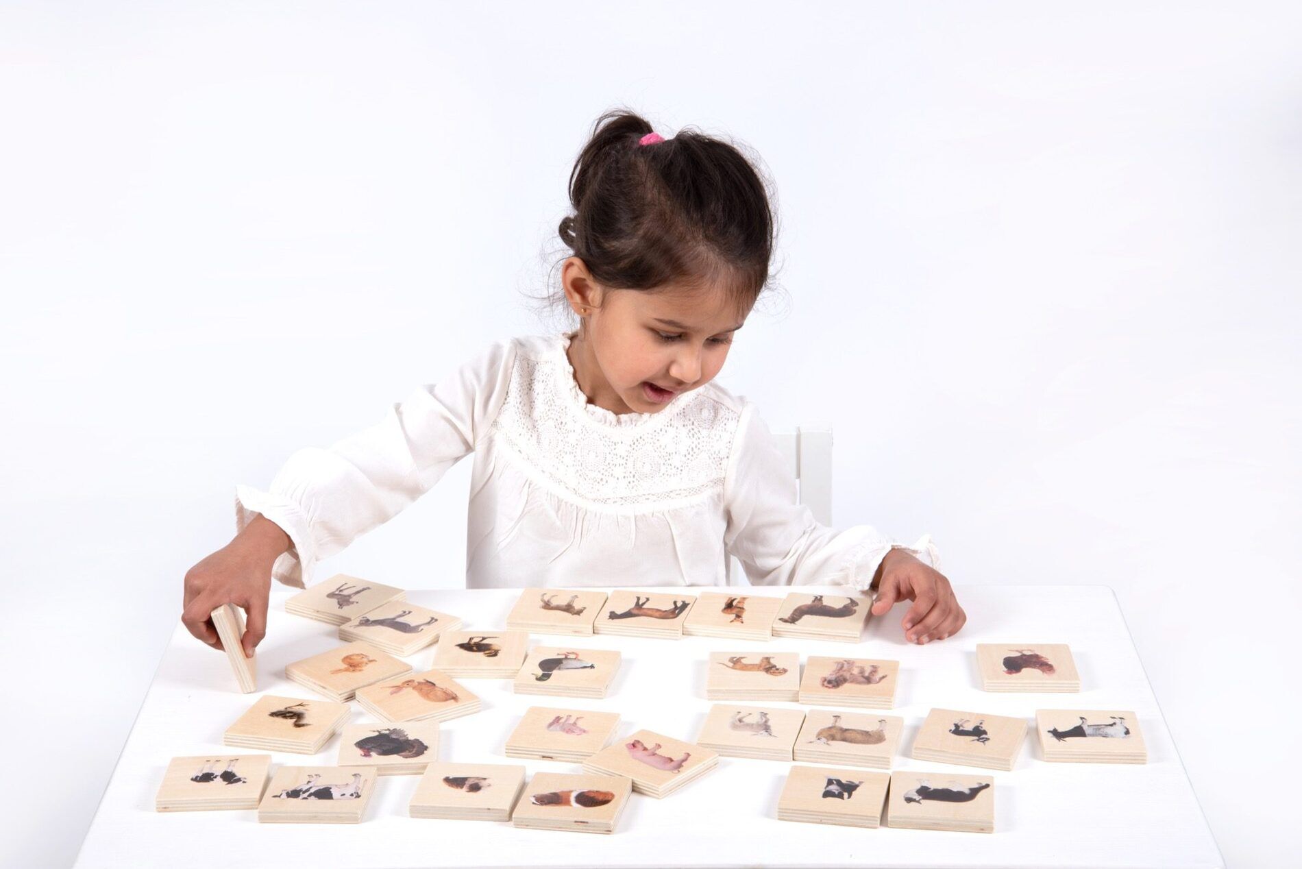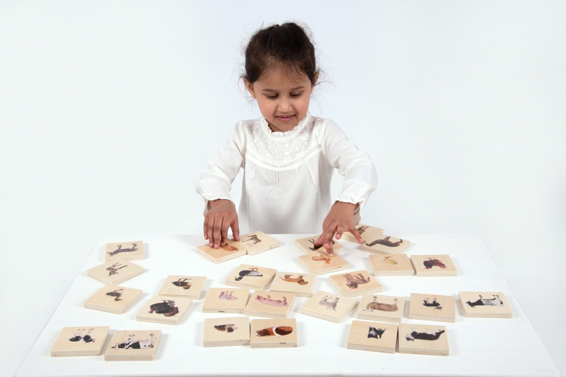 1. Als een matchingspel - draai alle tegels om en zoek het volwassen dier dat bij het jong hoort.