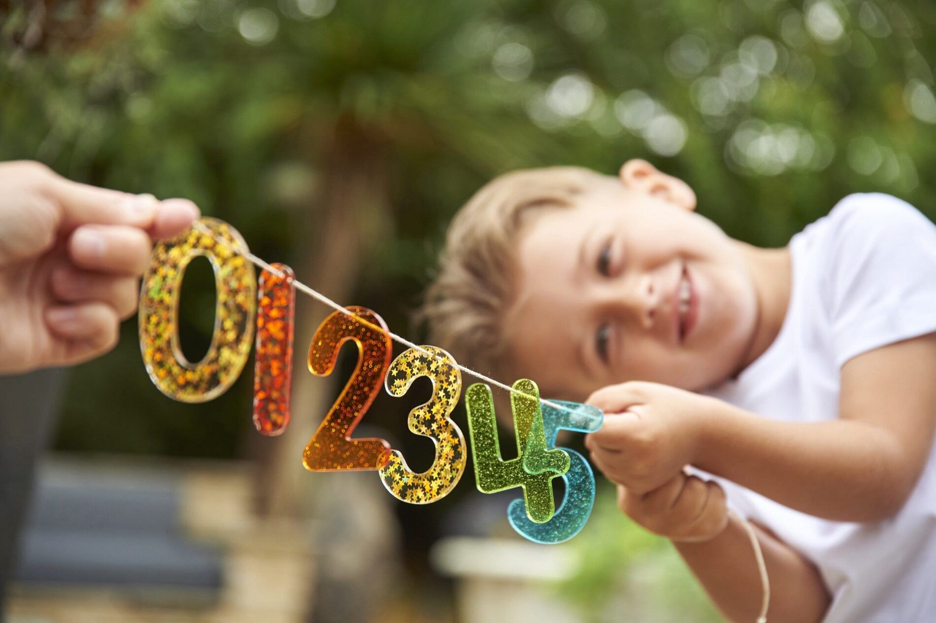 Een set van 14 sprankelende glittercijfers 0-9 gemaakt van kleurrijk doorschijnend 3 mm acryl. De set bevat twee stijlen van de cijfers 4 en 7, met een extra 1 & 0. Ze zijn ideaal voor gebruik op een lichtpaneel om het herkennen van cijfers te stimuleren.