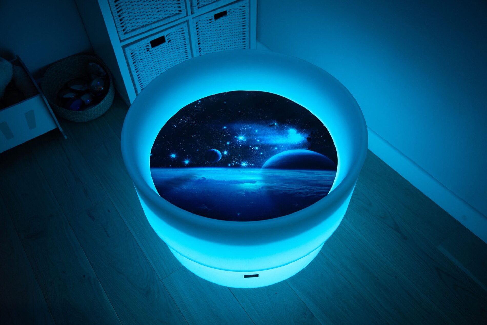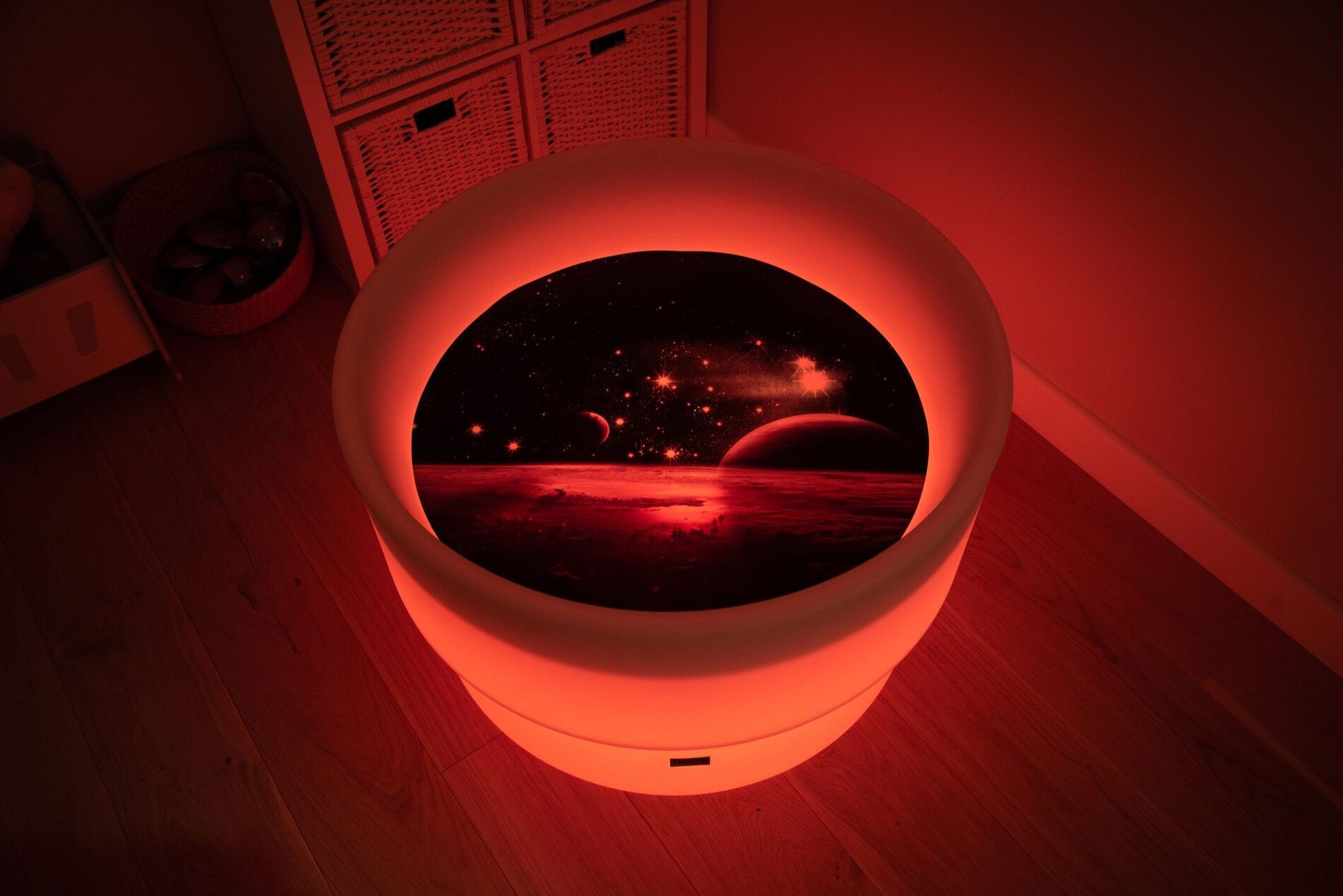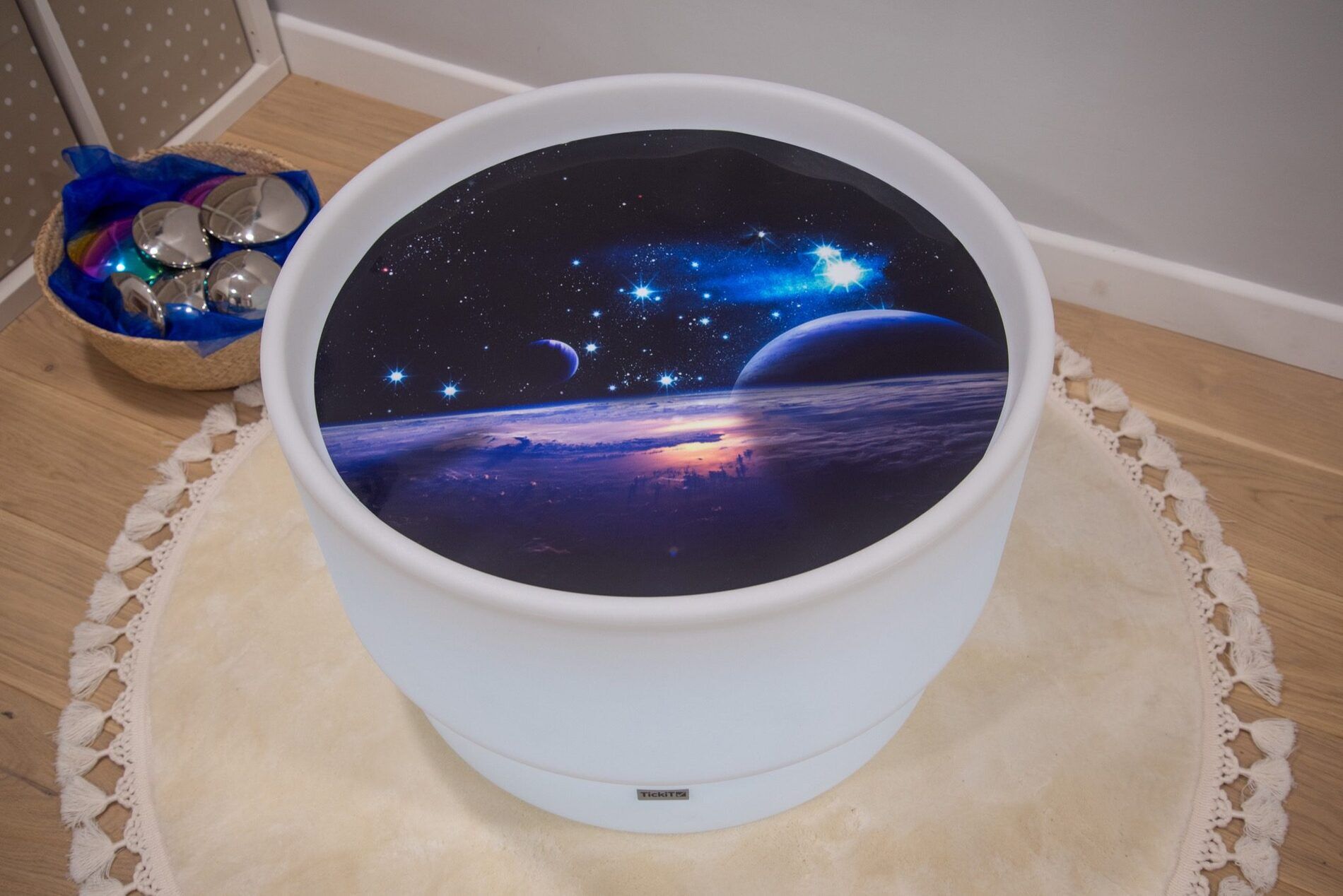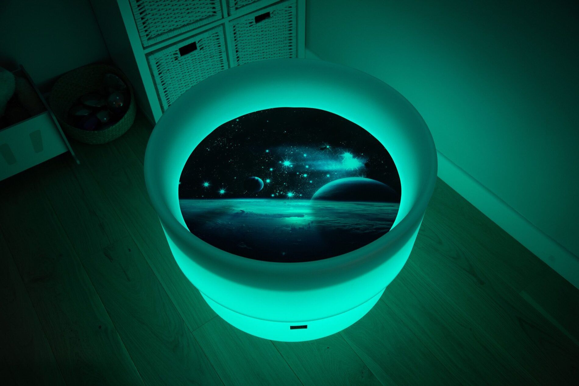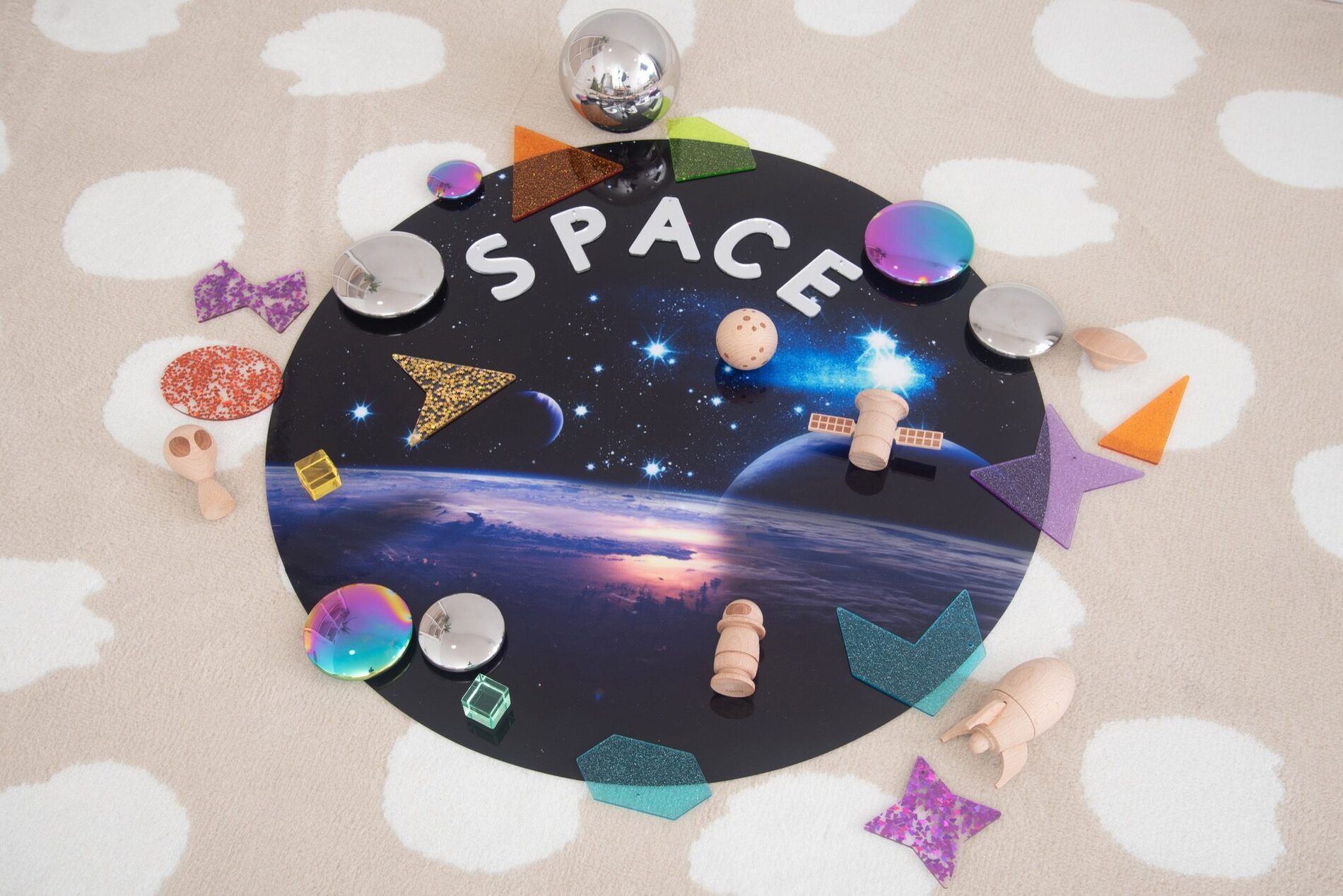De speelmat past perfect in onze Waterdichte draagbare lichttafel en de Tickit LED Lichtpaneel – Licht tablet rond. Gemaakt van duurzaam polyester, is de mat slijtvast en gemakkelijk schoon te vegen - de ideale accessoire voor spelletjes in het klein, verhalen vertellen en sensorische verkenning. Door de semi-transparante eigenschappen werkt de speelmat vooral goed op een lichtpaneel of sfeertafel, omdat het licht erdoorheen schijnt en de sterren en planeten verlicht. De gekozen lichtbron beïnvloedt de uitstraling van de mat op verschillende manieren: door sommige kleuren van het landschap te veranderen, de kleuren intenser te maken of zelfs sommige kleuren te laten oplichten - een fascinerende manier om kleur te verkennen tijdens het spelen