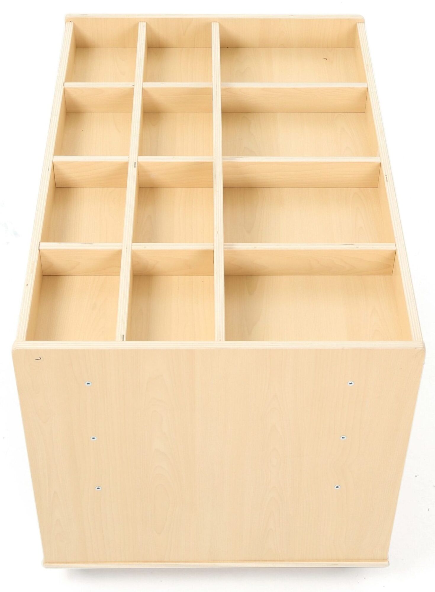 Deze verrijdbare materiaalkast biedt ruimte om hun knutsel- en schilderspullen gezamenlijk op te bergen. Dankzij de duidelijke indeling zijn de materialen netjes opgeborgen en altijd binnen handbereik. Er zijn twee opbergvakken aan elk van de lange zijden. Er zijn in totaal 12 afzonderlijke vakken op het oppervlak.