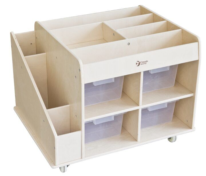 De opbergwagen is ontworpen als natuurlijk hout montageset, perfect voor accessoires. Speciaal ontworpen trolly helpt kinderen hun organisatorische vaardigheden te verbeteren.