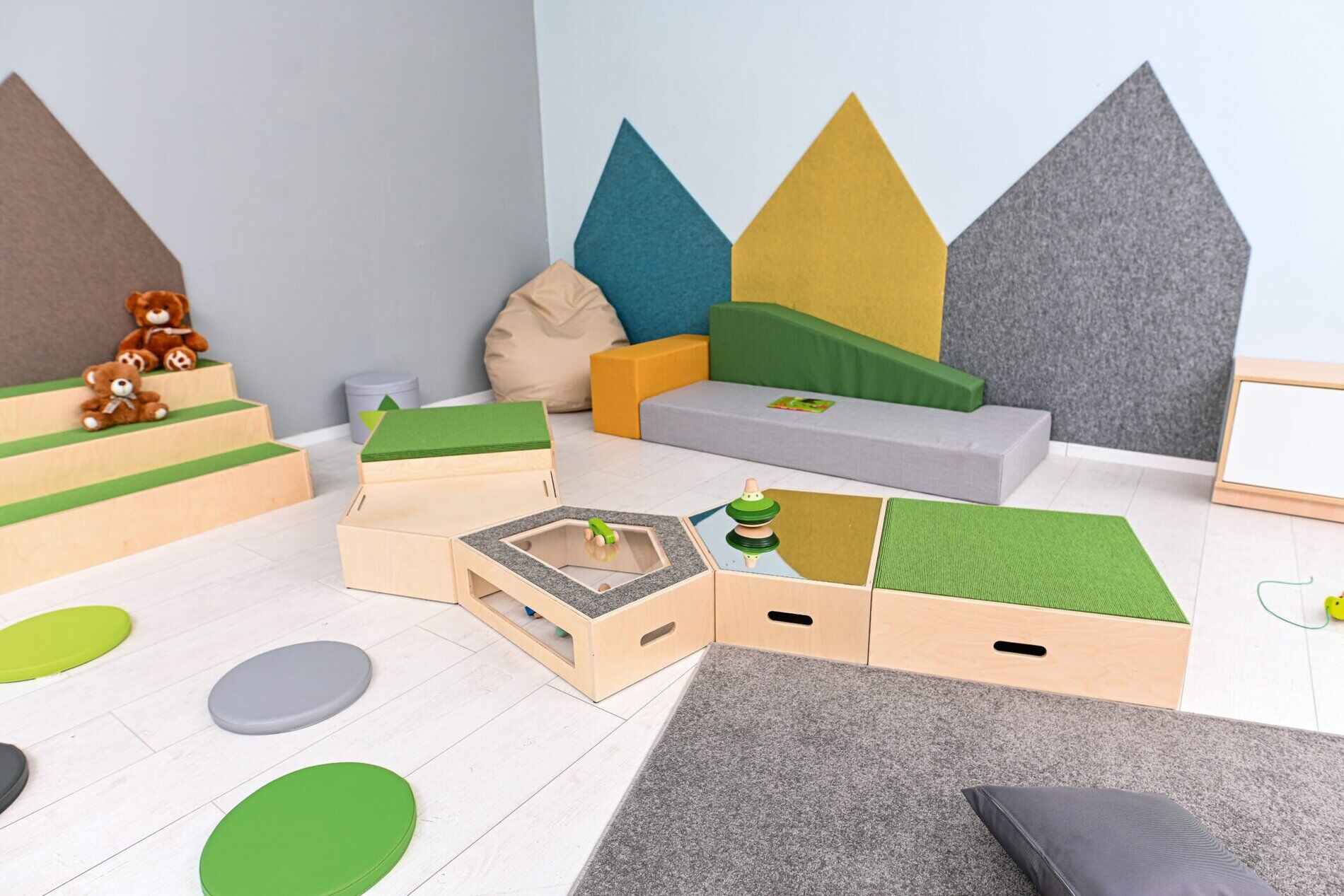 Laat de kinderen ontdekken, bewegen en bedenken wat ze met deze platformen kunnen doen. De mooi afgewerkte vijfhoekige platform is verkrijgbaar in drie versies - met spiegel, raam of deksel. De verschillende platforms kunnen op verschillende manieren gebruikt worden en bieden een passende oplossing voor elke ruimte.